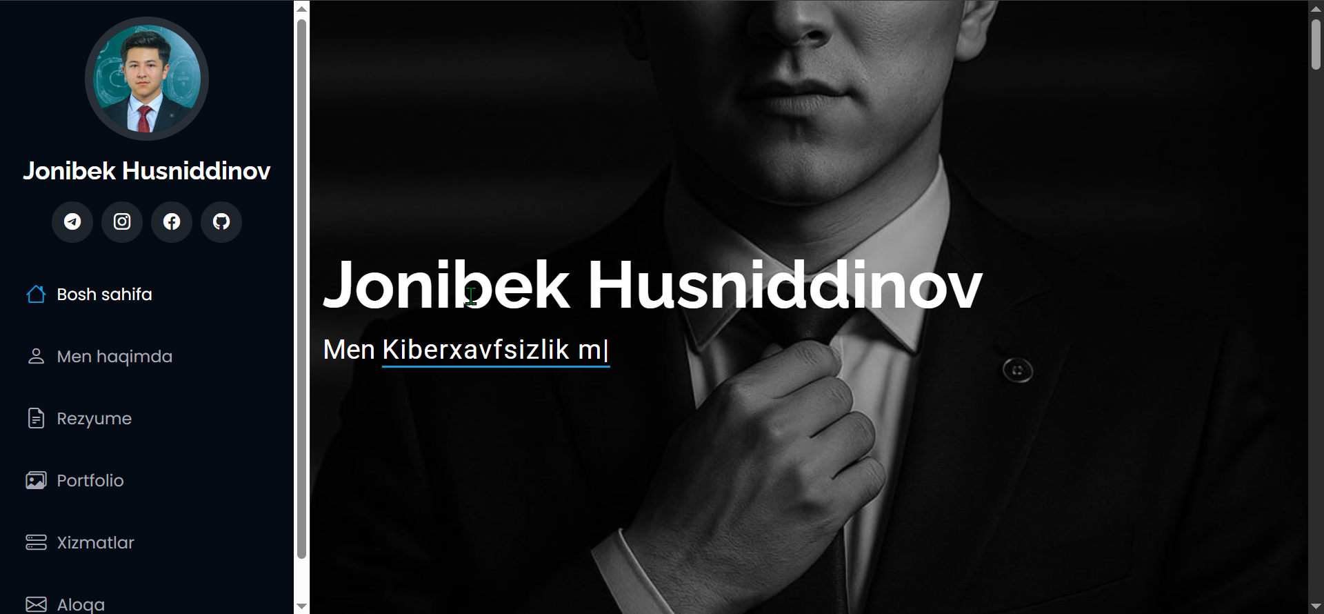 Men kiberxavfsizlik mutaxassisi va FullStack dasturchiman. So‘nggi yillarda web texnologiyalar, tizim xavfsizligi va dasturiy yechimlar yaratish yo‘nalishida faol ishlayman. Front-end va back-end sohalarini to‘liq qamrab olgan holda, zamonaviy, xavfsiz va samarali loyihalar ishlab chiqaman. Freelancer sifatida turli mijozlar bilan ishlash tajribasiga egaman — har bir loyiha uchun individual yondashuv, aniqlik va natijaga yo‘naltirilganlikni ustuvor deb bilaman. Maqsadim — texnologiyalar orqali ishonchli, barqaror va innovatsion yechimlar yaratish.